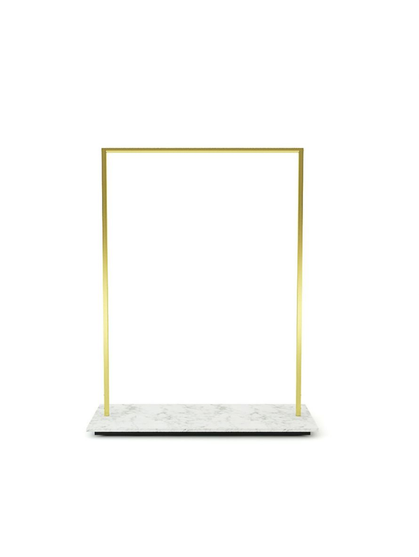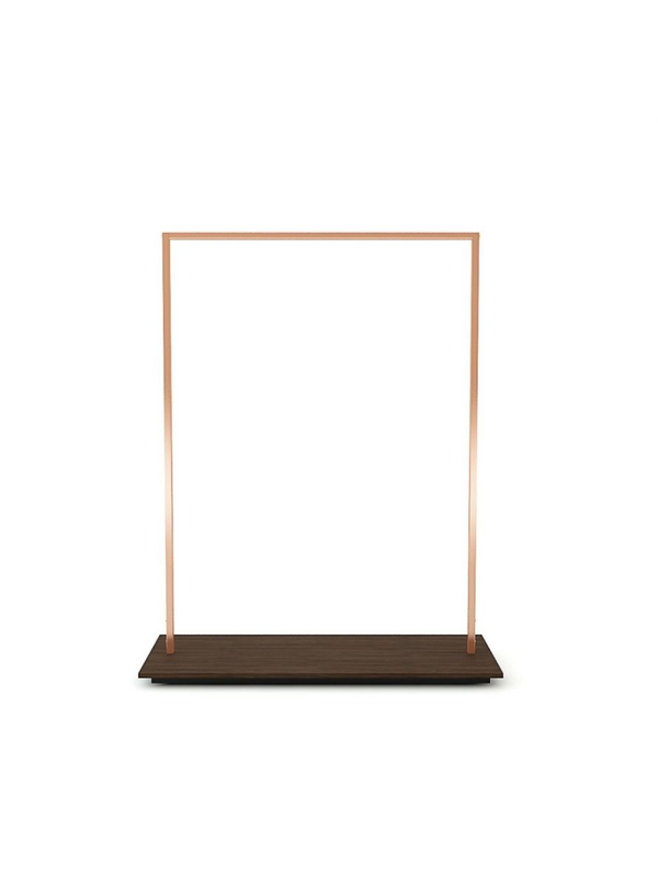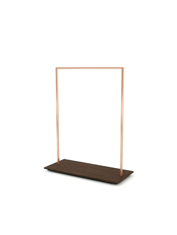 Kledingrek met houten voetplaat (100x55cm), metaal finish in glossy gold, glossy rosegold of brushed gold.